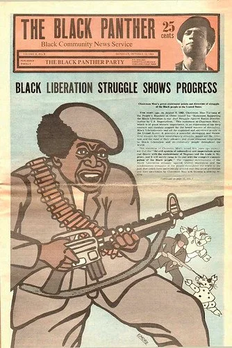 Cover of The Black Panther newspaper vol. II, no. 9, October 1968. Designs and illustrations by Emory Douglas, Minister of Culture for The Black Panther Party
